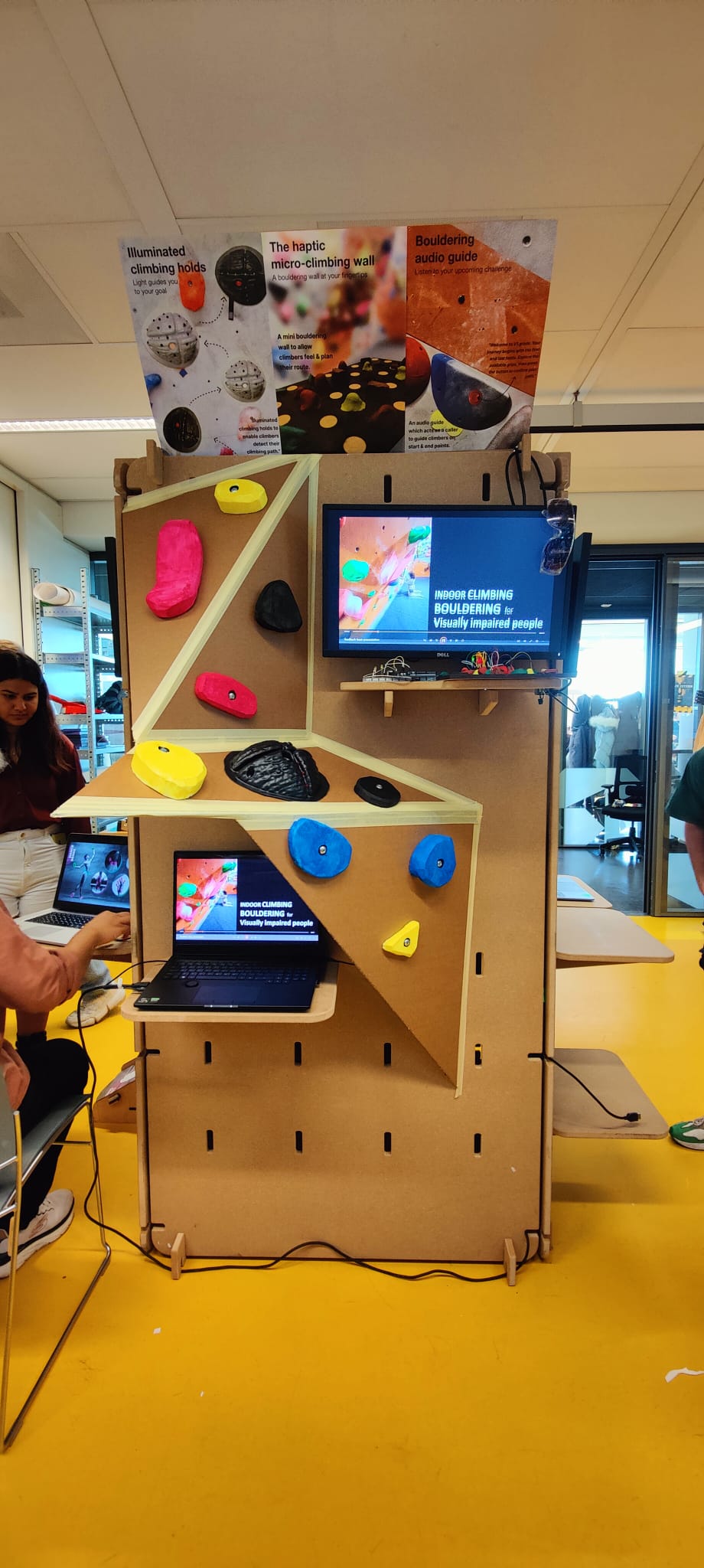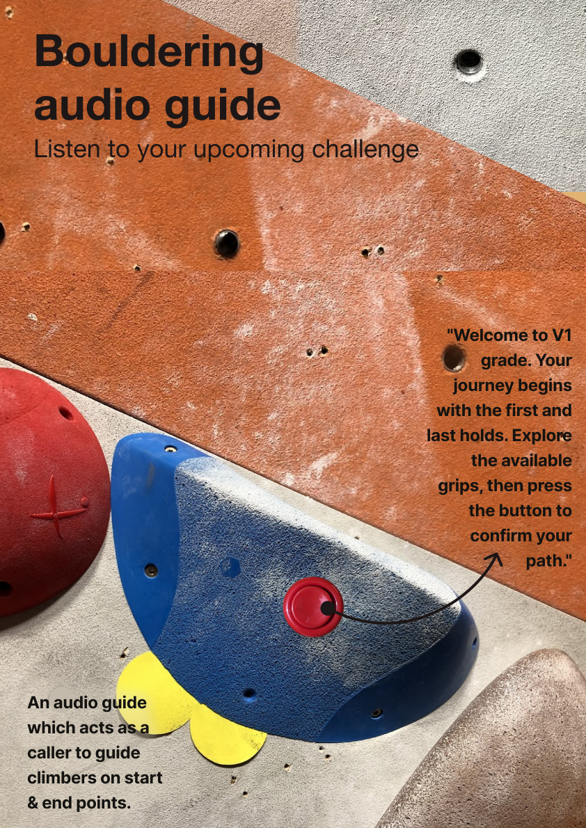 “To gain insights and inform our ideation process, we explored real-world experiences of visually impaired climbers through various methods. These workshops were designed to brainstorm and prototype solutions that address their unique challenges.”